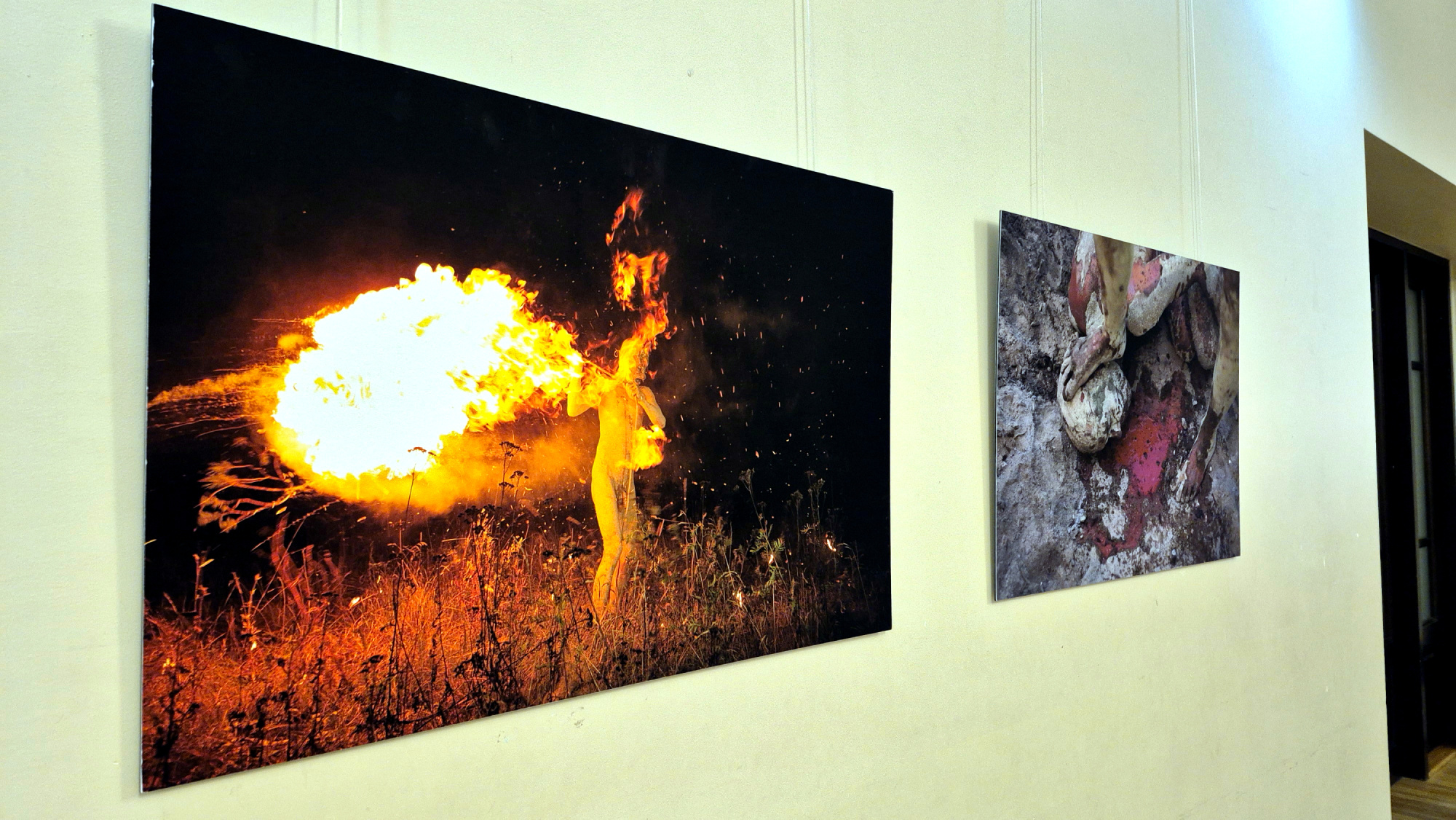 “Tā kā mums ir keramiķi, mēs arī nedaudz iekļāvām zemes stihiju un uguni, līdz ar to visās fotogrāfijās un citos darbos parādās sarkanā krāsa vai uguns un arī zeme,” stāsta biedrības “Alla Prima” valdes priekšsēdētāja, gleznotāja Jolanta Ābele. “Tāda sinerģija, tur viss sajaucas juku jukām, bet ir ļoti interesanti. Interesanti ir arī tas, ka katrā vietā mākslinieks uztver un strādā nedaudz savādāk. Citus toņus izvēlas nekā klasiski, ar ko viņš strādā. To visu novērot man kā māksliniecei ir ļoti interesanti un aizraujoši.”