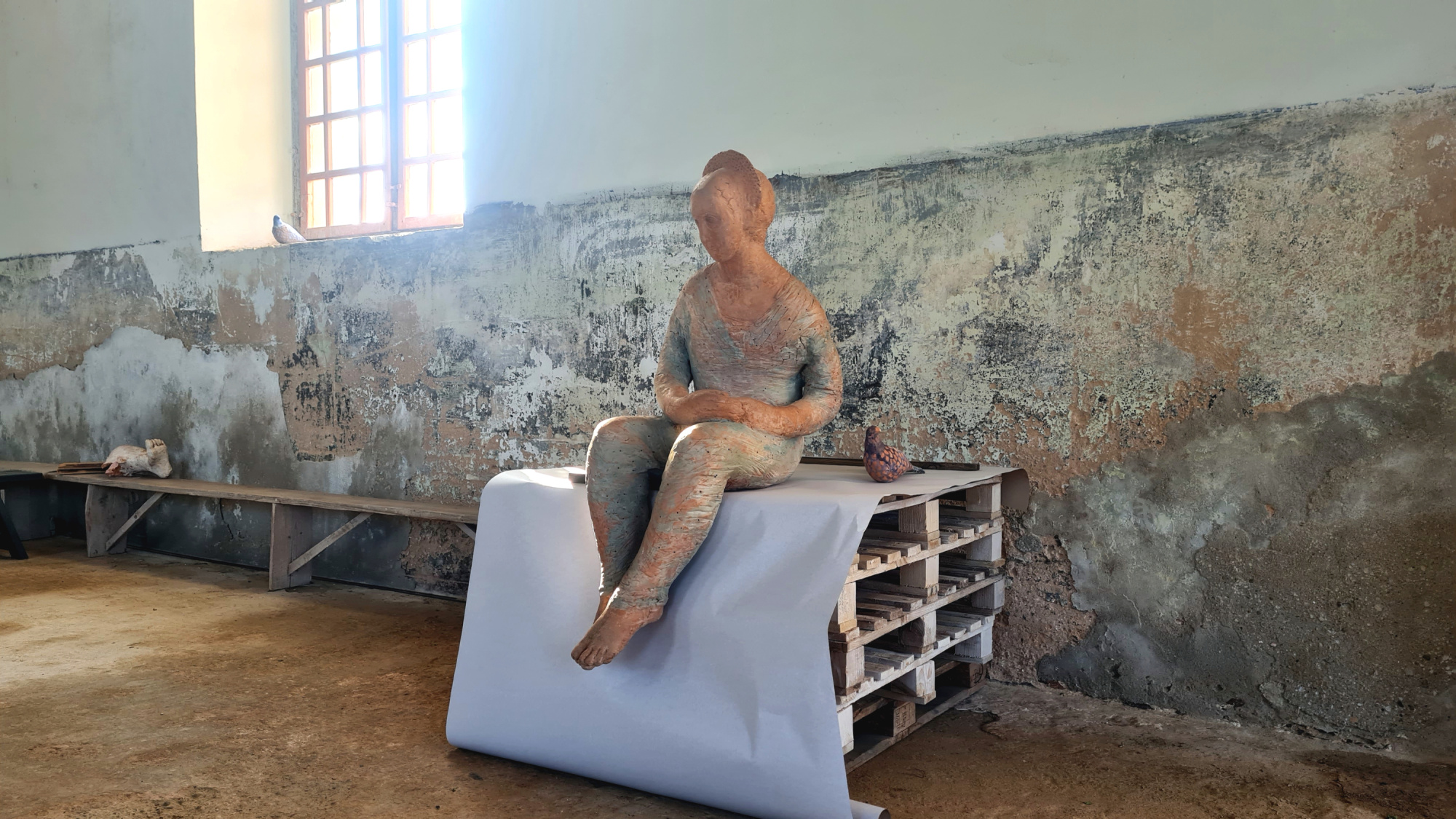 “Tas, ko mēs esam iecerējuši, ir pāri mūsu spējām droši vien, bet mums būs liela objektu instalācija ar papīru, un tad būs arī manas skulptūras, kuras ir no māla,” stāsta Anda Poikāne. “Māls ir apdedzināts, tā saucas terakota. Tās ir pilna auguma cilvēku skulptūras.”