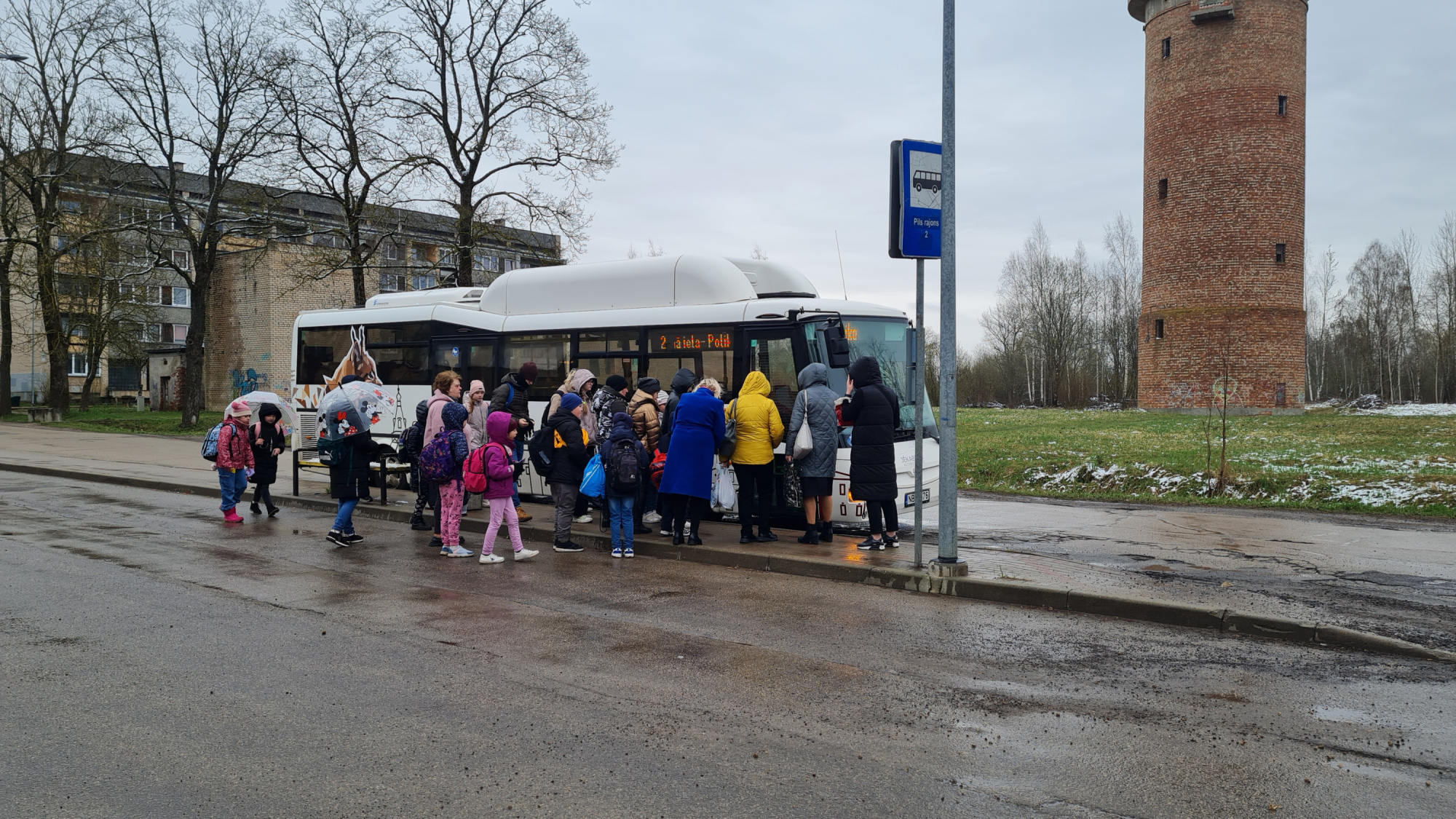 “Mēs ar vīru redzam, ka stāv autobuss un pieturā stāv bērns,” stāsta Ināra. “Vīrs pieklauvēja pie autobusa durvīm un teica šoferim: “Lūdzu, atveriet durvis, jo stāv bērns, ielaidiet viņu iekšā!” Autobusa šoferis teica, ka tās nav viņa problēmas, lai nāk tuvāk laikam [reisa atiešanas laikam]. Un aiztaisīja ciet durvis, un viss. Bet bērns... tiešām lietus lija, jūs redziet, kāds lietus bija no rīta šausmīgs!”
