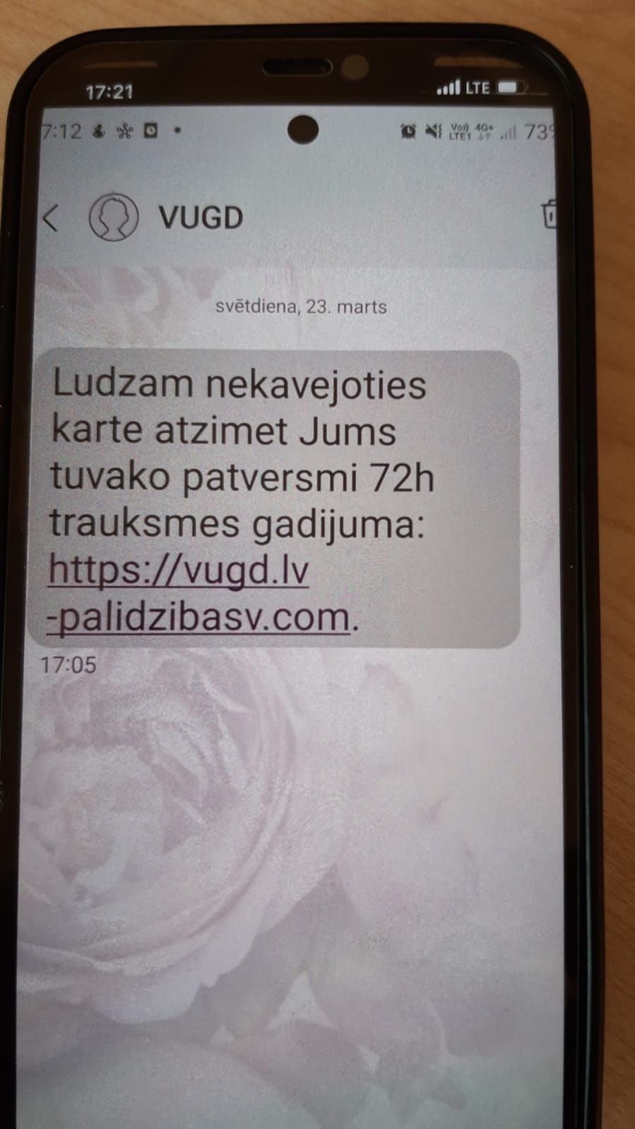 Iedzīvotāji savos mobilajos telefonos saņem īsziņas, kuras it kā sūtījis Valsts ugunsdzēsības un glābšanas dienests. Tekstā cilvēki tiek aicināti atzīmēt kartē tuvāko patversmi. Valsts ugunsdzēsības un glābšanas dienestā uzsver, ka dienests neizsūta šādas īsziņas un ka to autori ir krāpnieki. Saņemot šādu īsziņu, lūgums nespiest uz norādītās saites un neievadīt datus.