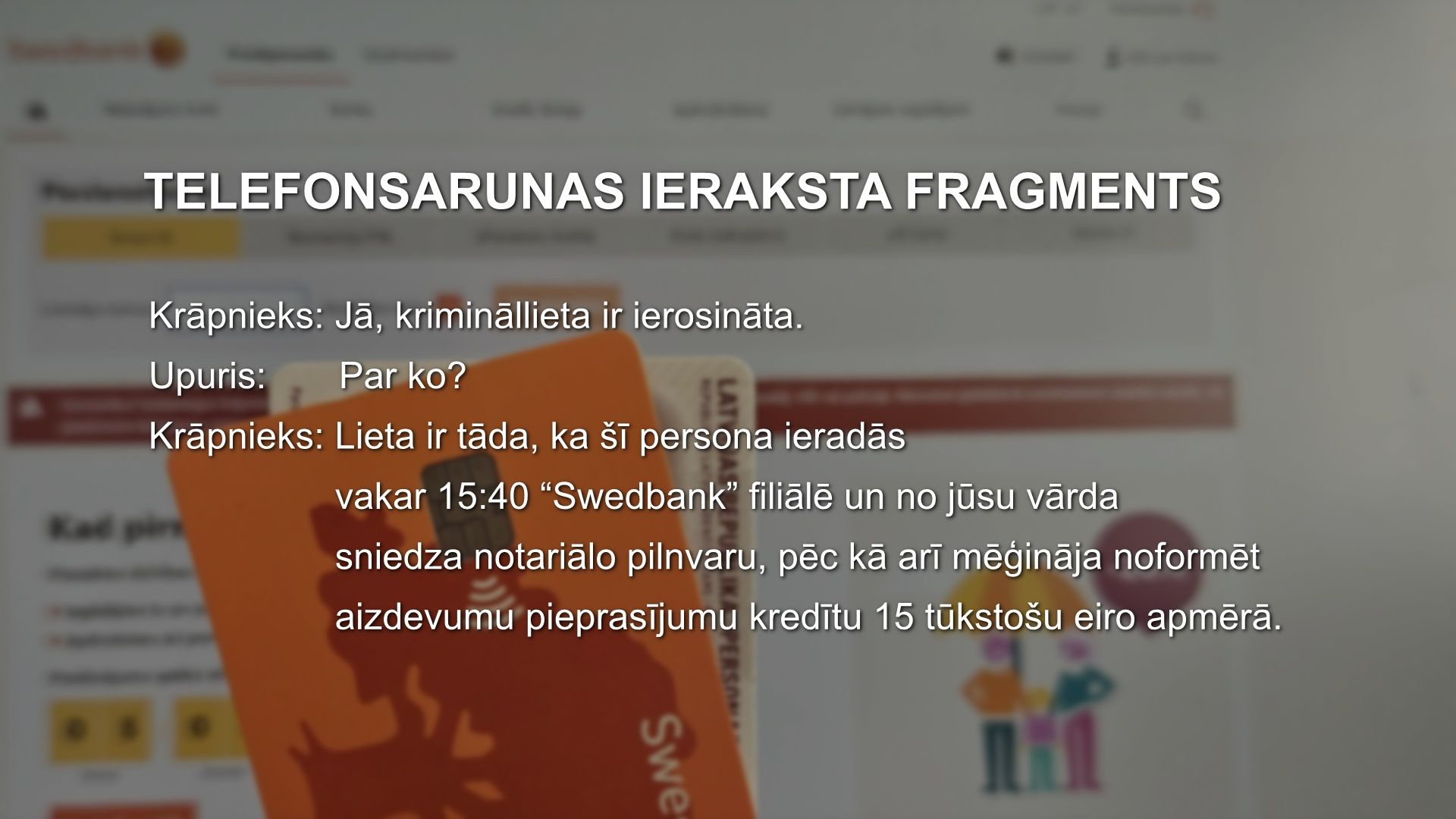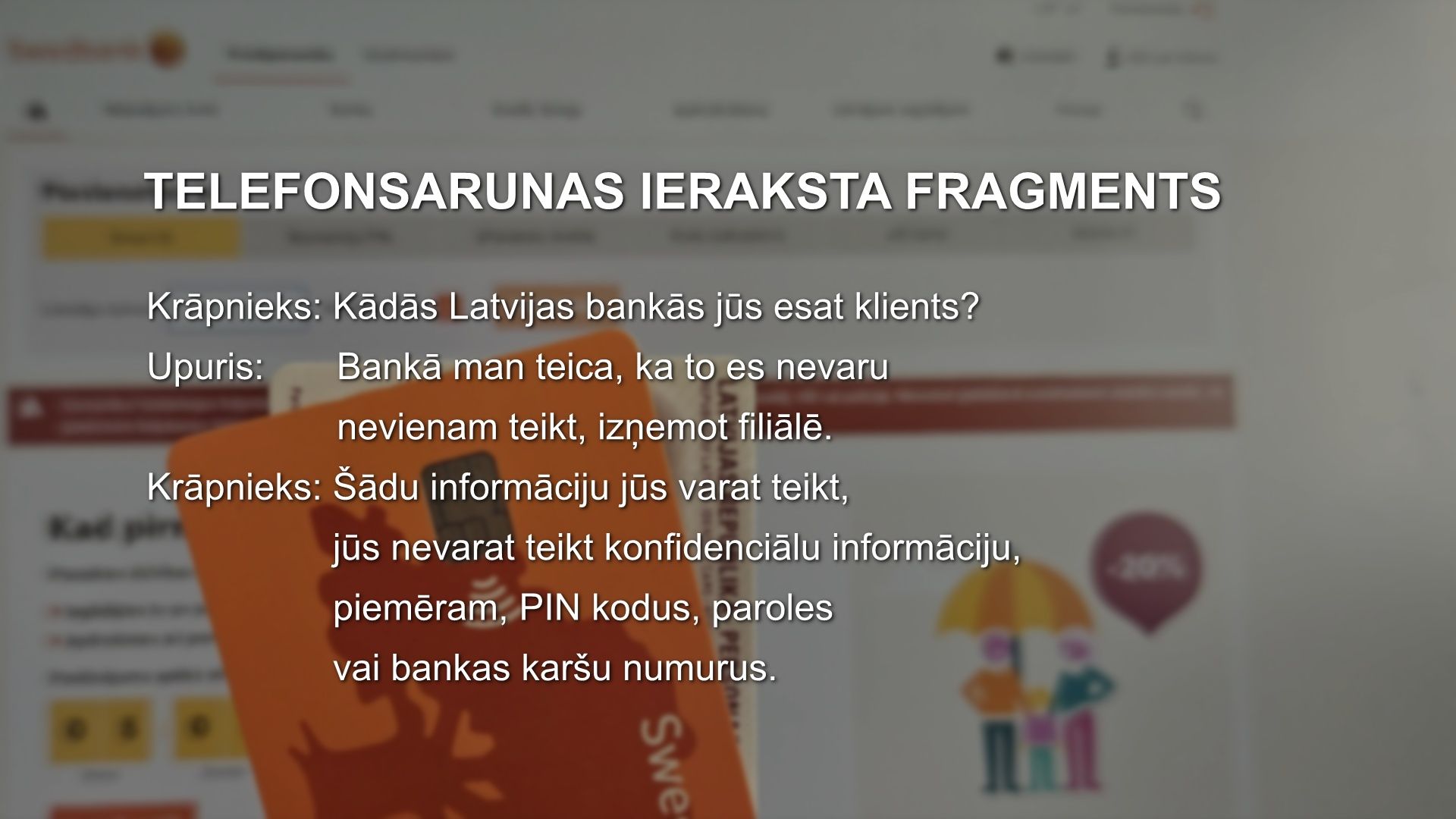 Jāatceras, ka noziedznieks neprasa bankas pieejas datus uzreiz, bet gan cenšas ievilināt sarunā, lai iegūtu upura uzticību. Visbiežāk viens no pirmajiem jautājumiem, ko viņi uzdod, – kādu banku upuris izmanto, vai viņš var pastāstīt, kur un kā veicis maksājumus pēdējā laikā.