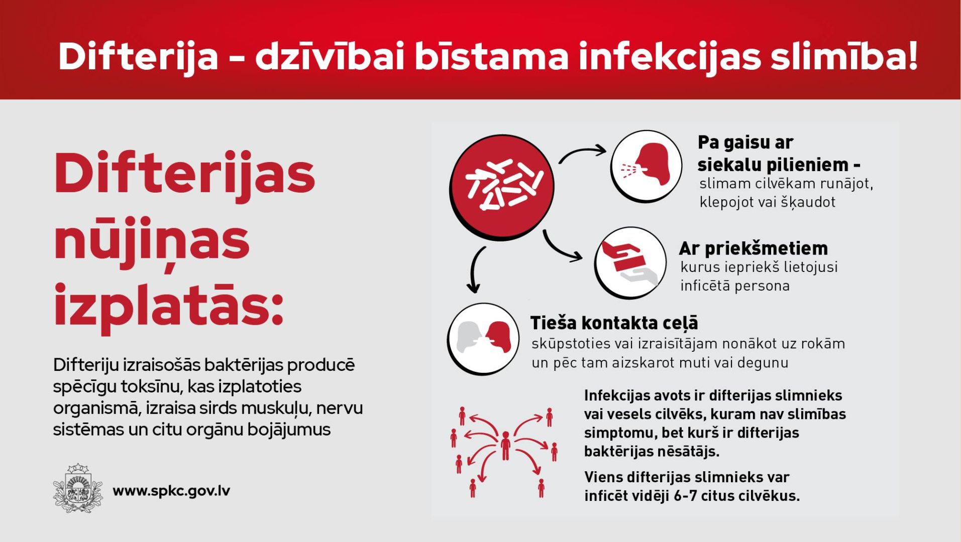 Tā ir reta, bet ļoti nopietna slimība, kas smagi skar nevakcinētas personas. Laika periodā no 2007. līdz 2023. gadam Latvijā reģistrēti 122 difterijas gadījumi, desmit no tiem jeb 8,2 procenti beigušies letāli.