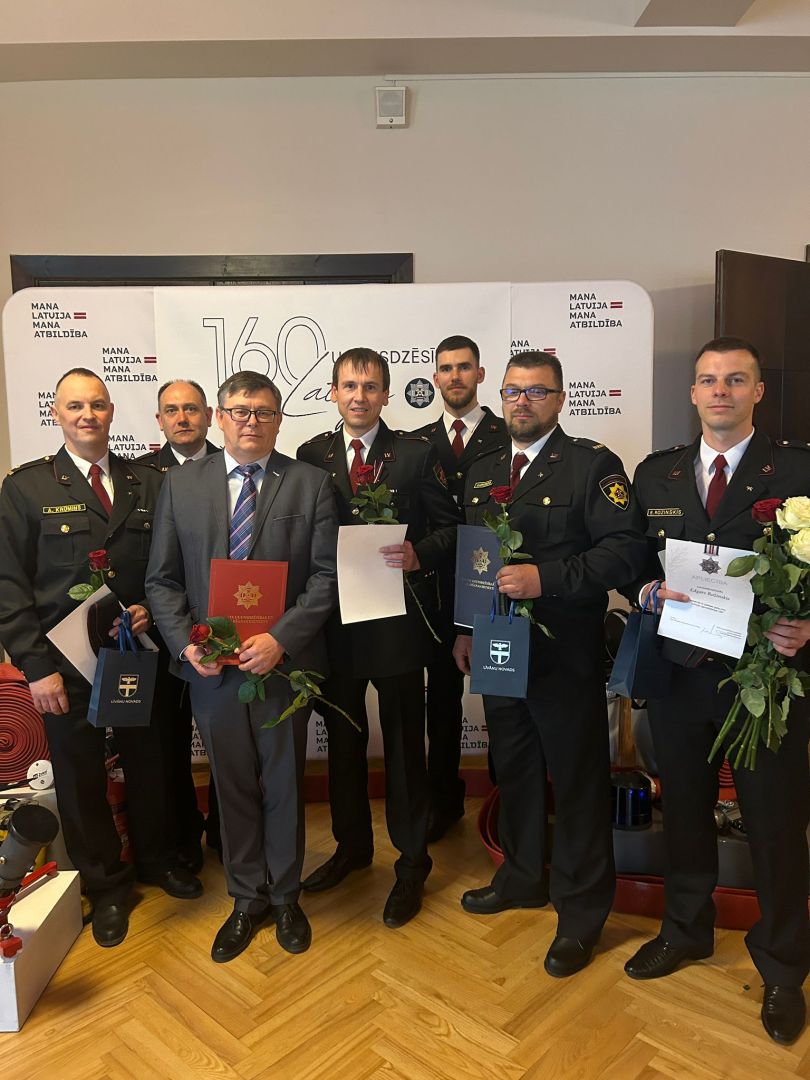 Par nozīmīgu ieguldījumu Valsts ugunsdzēsības un glābšanas dienesta stratēģisko mērķu un uzdevumu īstenošanā, attīstības un prestiža veicināšanā, kā arī par teicamiem dienesta pienākumu izpildes (darba) rezultātiem un sakarā ar Latvijas Ugunsdzēsības 160. gadadienu ar Valsts ugunsdzēsības un glābšanas dienesta apbalvojumu “Jubilejas goda zīme “Latvijai Ugunsdzēsībai - 160”” tika apbalvoti: