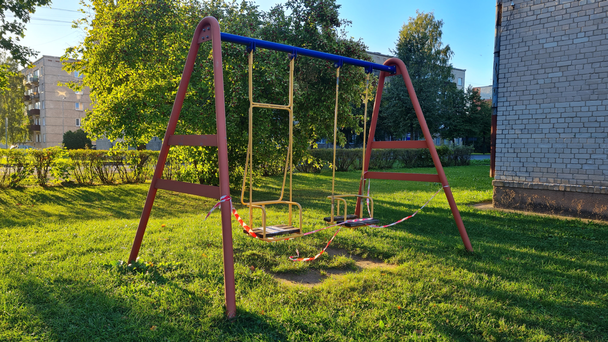 Iespējams, protestējot pret rotaļu laukumu demontāžu, daudzviet jau norautas norobežojošās lentas un brīdinājuma lapas.