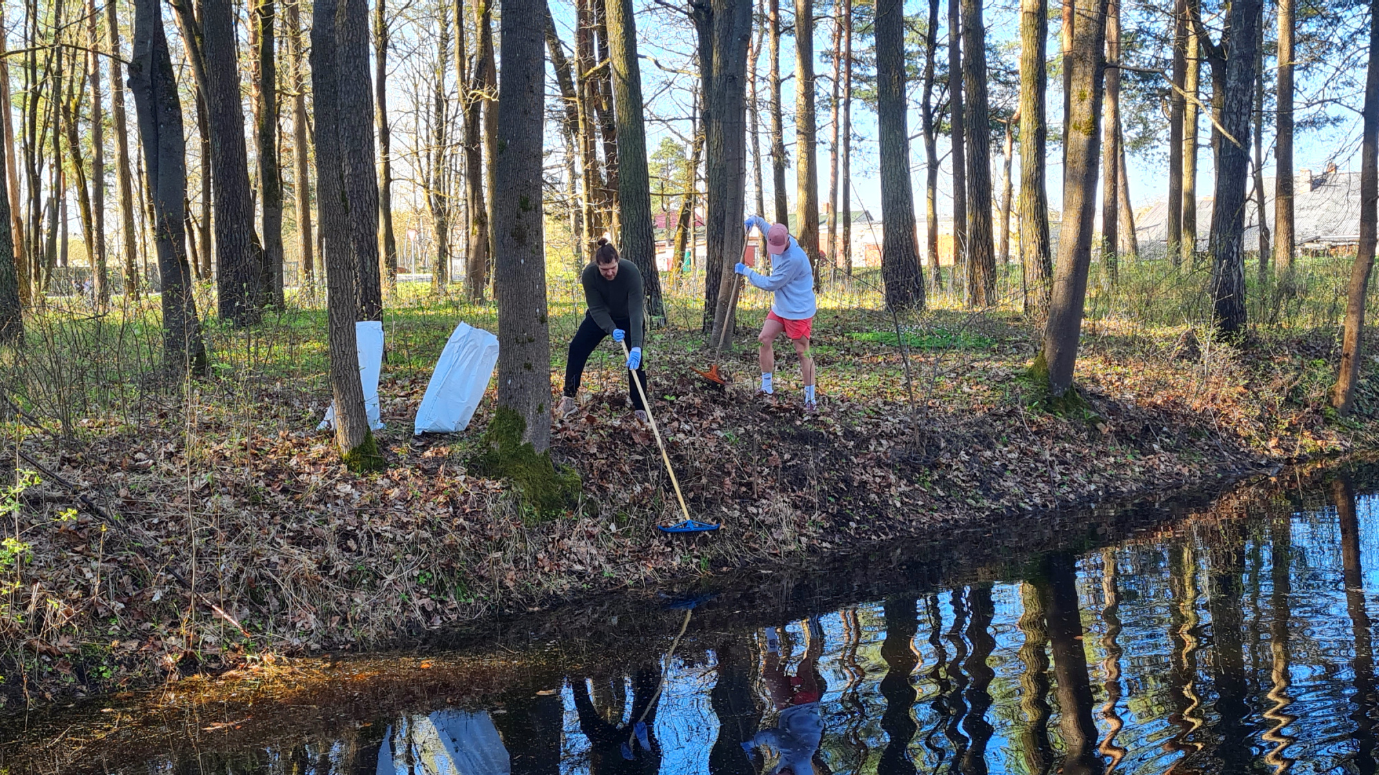 Talkotāji atbrīvoja teritoriju no saaugušajiem krūmiem, tāpat grāba lapas, vāca zarus un lasīja atkritumus.