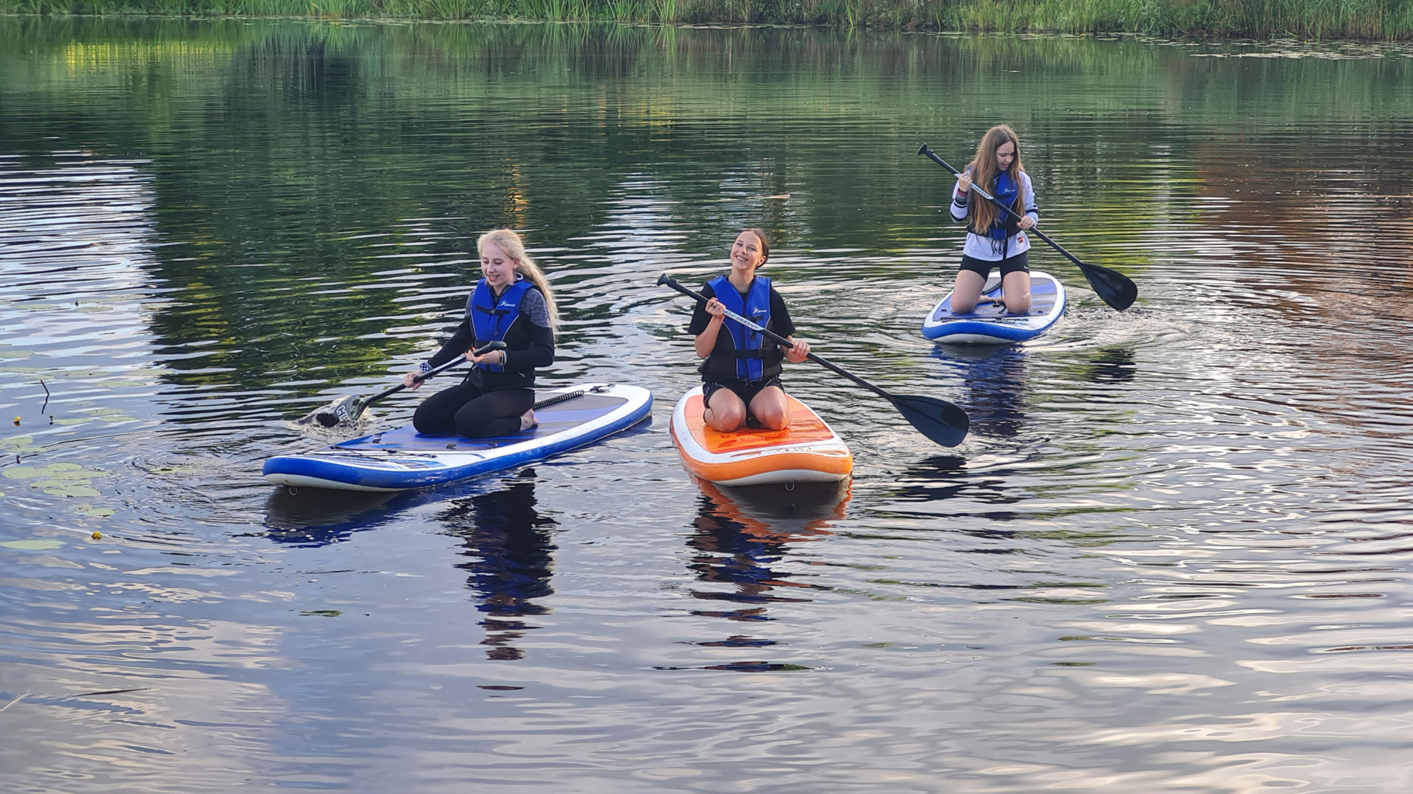 “Es šodien pirmo reizi supoju,” stāsta līvāniete Vanesa. “Sajūtas labas, tas ir diezgan viegli. Kad tu sāc, vienkārši vajag pierast līdzsvaru noturēt, tad jau kļūst vienkārši, tad jau tu vari apstāties un supot. Galvenais noturēt līdzsvaru. Man ļoti iepatikās.”