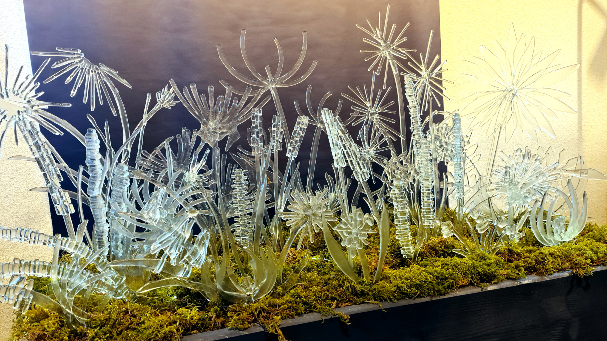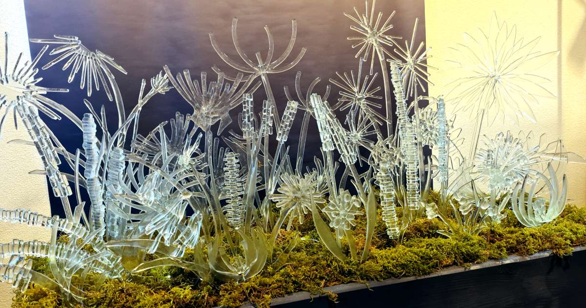 Vairums izstādē redzamo darbu ir izgatavoti no otrreiz pārstrādāta logu stikla. Katra darba tapšanas laiks ir atšķirīgs. Piemēram, vienas stikla puķes izveides laiks ir no pusstundas līdz divām stundām – atkarībā no sarežģītības. Izstādē aplūkojamas arī stikla rotaslietas un trauki, kā arī citi darinājumi. Stikla māksliniece Ingrīda Degtjarova stāsta, ka viņai pašai vislabāk patīk tie darbi, kas tapuši bez iepriekšējas plānošanas.