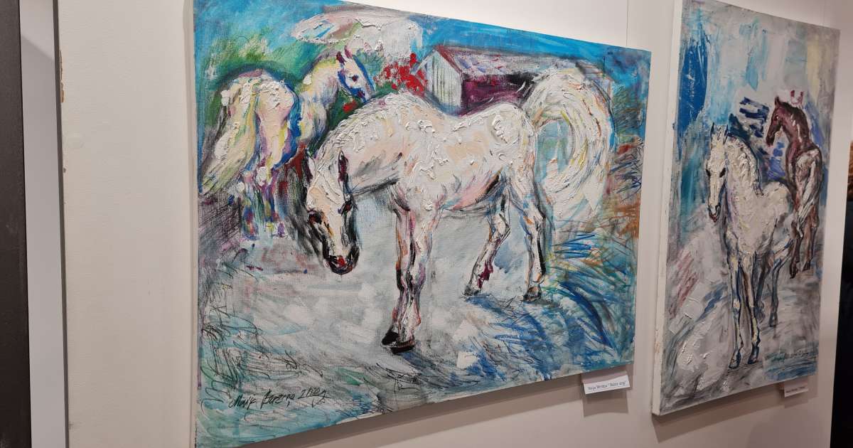Savukārt Zanes mammai Maijai viens no iedvesmas avotiem ir zirgi. Arī šajā izstādē daudzās gleznās attēloti rikšotāji.