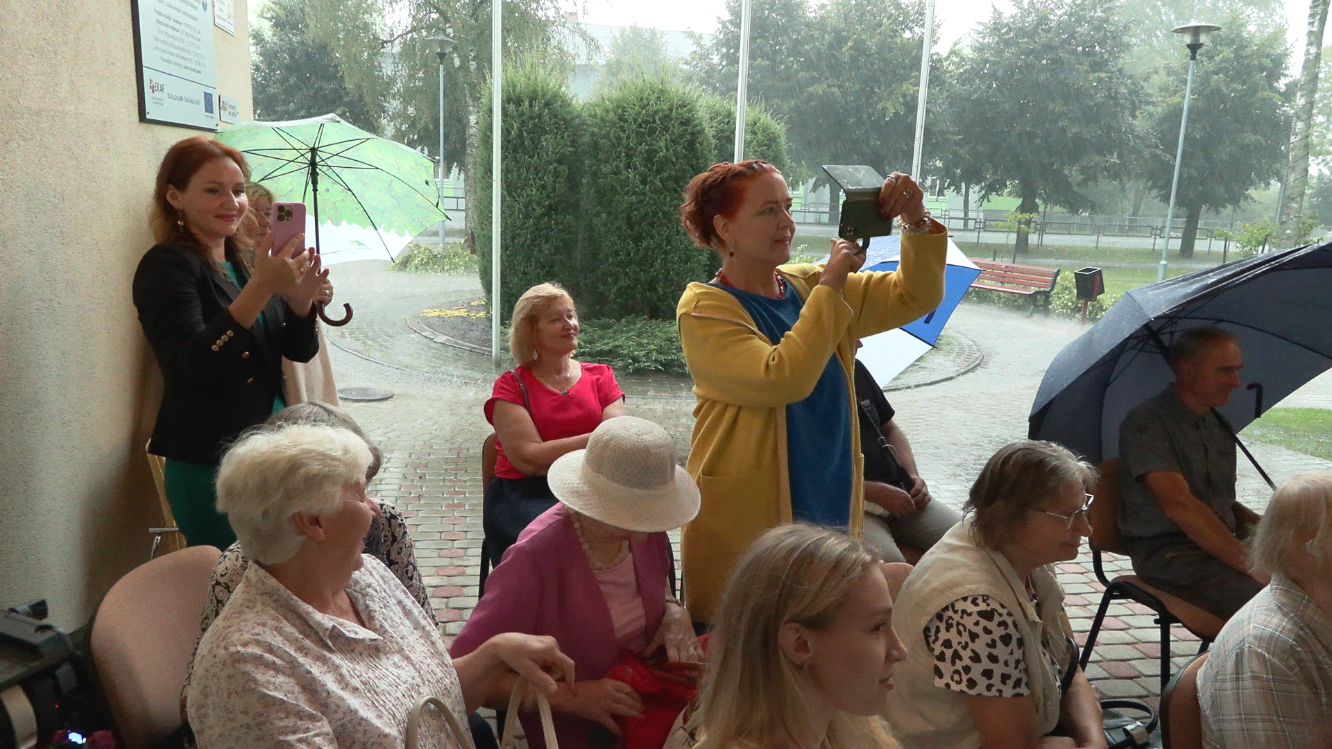 “Tas pērkons, kas arī tagad skan... Es domāju, ka viņam bišķiņ skauž, ka šeit notiek kaut kas tik foršs!” saka dzejniece. “Viņš grib kaut ko pabojāt un kaut ko mums no savas dzejas ielikt, bet mēs redzam, ka līvānieši arī lietus, pērkona laikā māk mobilizēties un sanākt sirsnīgāk kopā.”