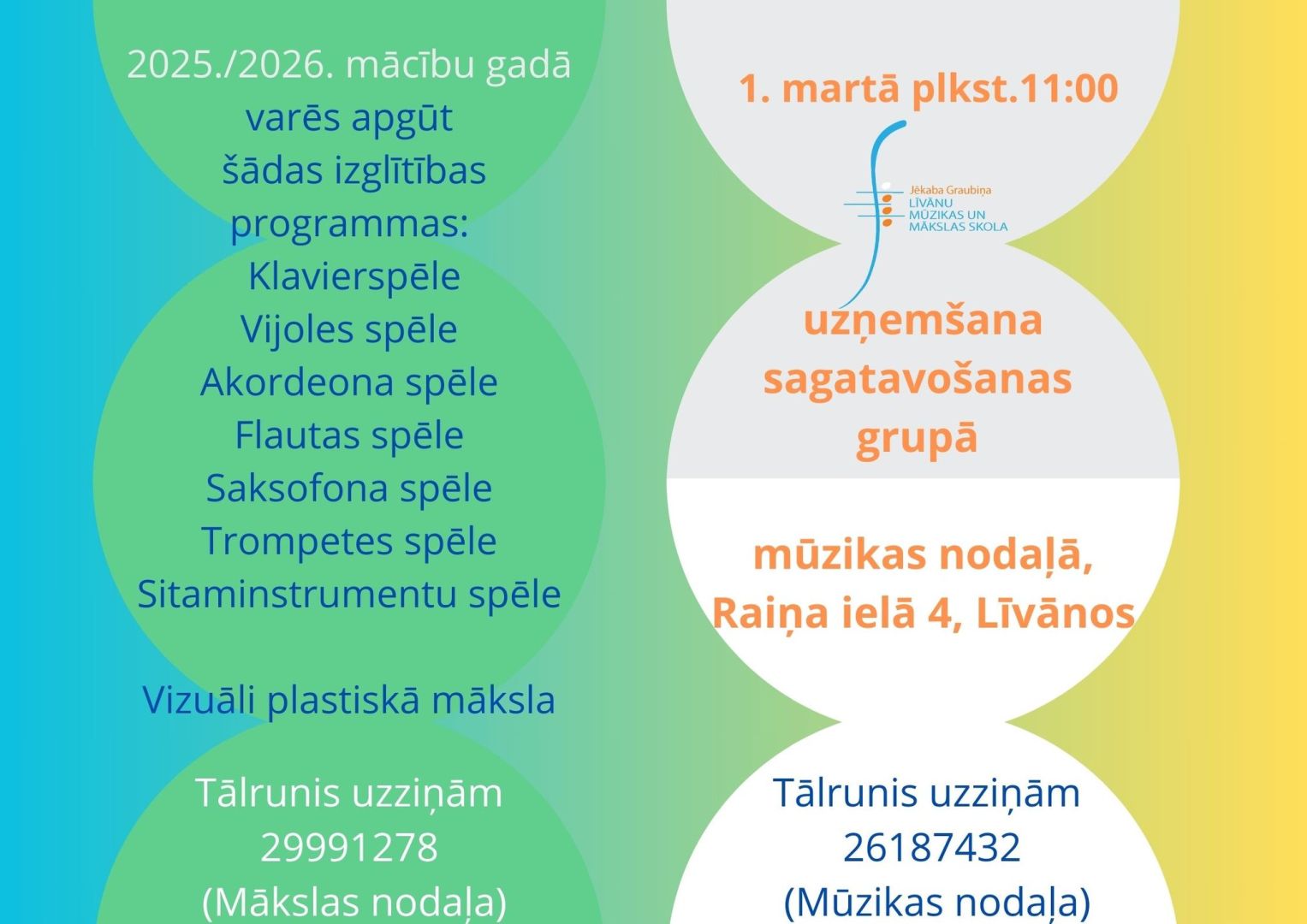 1. martā Jēkaba Graubiņa Līvānu Mūzikas un mākslas skolā norisināsies audzēkņu uzņemšana sagatavošanas grupā. Tāpēc potenciālie skolēni – pirmsskolas izglītības iestāžu un 1. klašu audzēkņi – jau laikus tika aicināti uz nelielu koncertu, kurā viņiem bija iespēja iepazīties ar dažādiem mūzikas instrumentiem.