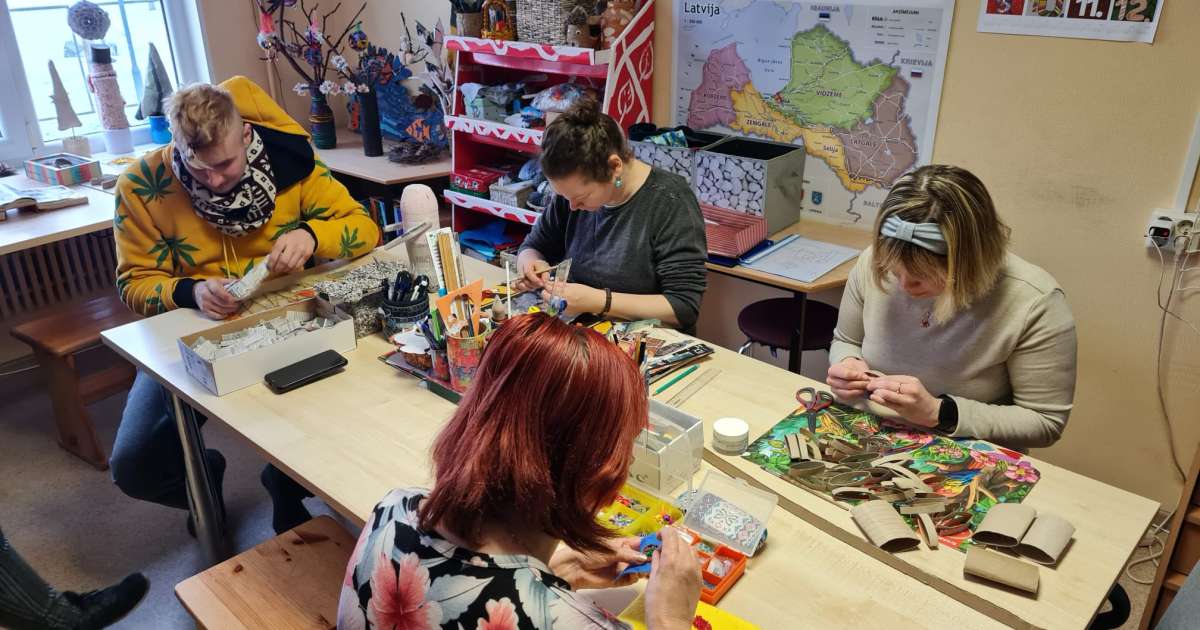 No otrreiz izmantojamām izejvielām top rotaslietas, gleznas, zīmējumi, dekori, apsveikumu kartītes un daudzi citi darbi, ko Dienas aprūpes centrs regulāri apkopo izstādēs, kas tiek veidotas bibliotēkās un citās iestādēs.