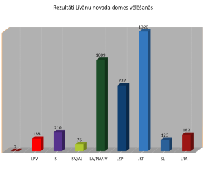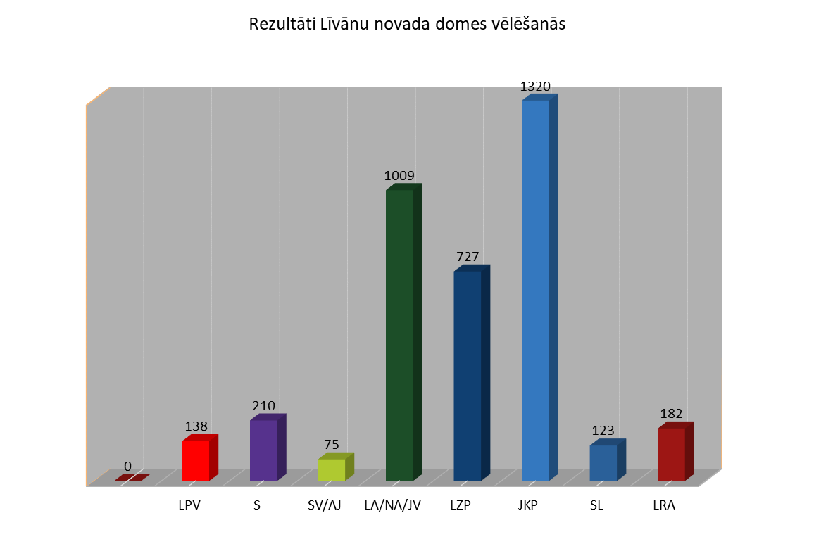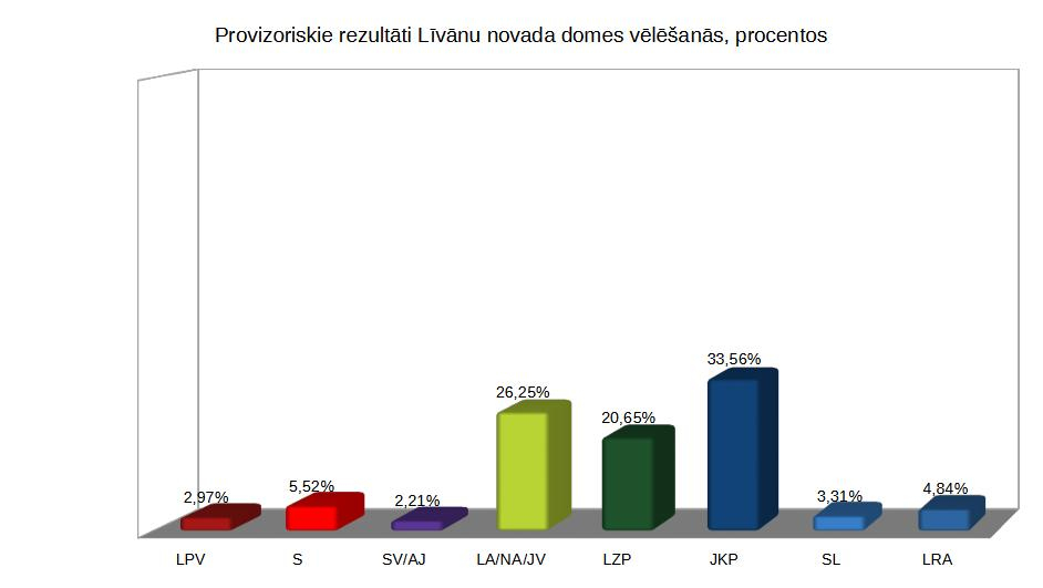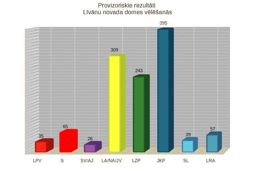 7:05 Pašvaldību vēlēšanās Līvānu novada pašvaldībā vislielāko vēlētāju atbalstu – 34,69% balsu – saņēma JKP Jaunā konservatīvā partija, iegūstot 6 deputātu vietas un kļūstot par pārliecinošu līderi. Otrajā vietā ar 26,52% balsu un 5 vietām domē ierindojās apvienotais saraksts: Latvijas attīstībai, Nacionālā apvienība "Visu Latvijai!"–"Tēvzemei un Brīvībai/LNNK" un Jaunā VIENOTĪBA. Latvijas Zaļā partija ar 19,11% balsu ieguva 3 vietas. Vienu vietu domē ieguva arī "Saskaņa" sociāldemokrātiskā partija, kurai bija 5,52% balsu.