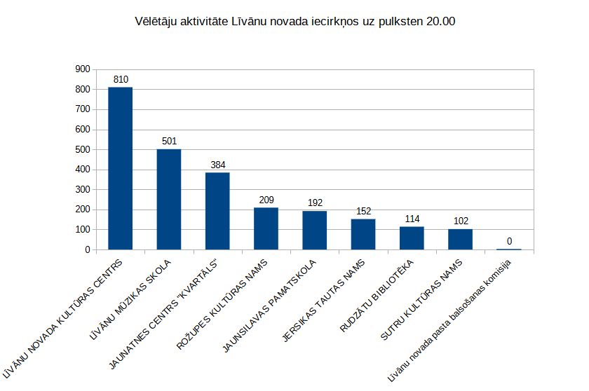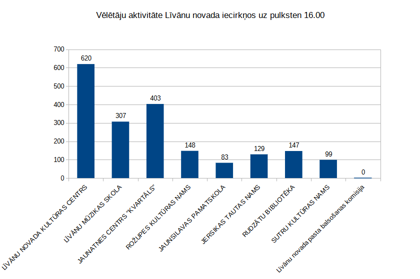 17:00 Līvānu mūzikas skolā vēlēšanu dienā līdz pulksten 16:00 nobalsojuši 307 cilvēki. Iepriekšējās balsošanas laikā savu balsi bija nodevuši 259 iedzīvotāji. Saņemti arī trīs iesniegumi par balsošanu mājās. Vēlēšanu komisijas pārstāvis norāda, ka aktivitāte varētu būt lielāka, taču tā jau ir augstāka nekā iepriekšējās vēlēšanās.