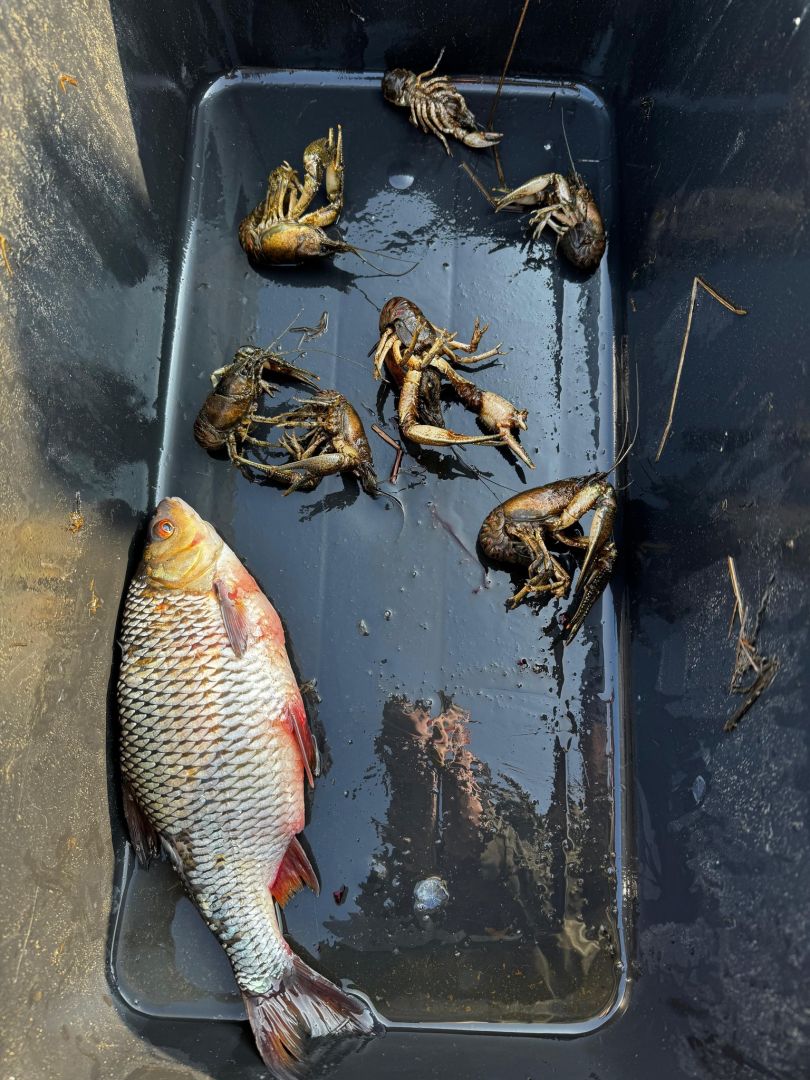 Pirmajā gadījumā inspektori pieķēra personu, kas no ūdens nelikumīgi izņēma ievērojama garuma – 30 metru – zvejas tīklu.Tajā atradās viena rauda un septiņi vēži, kuri visi bija dzīvotspējīgi un tika atlaisti atpakaļ Daugavas ūdeņos.