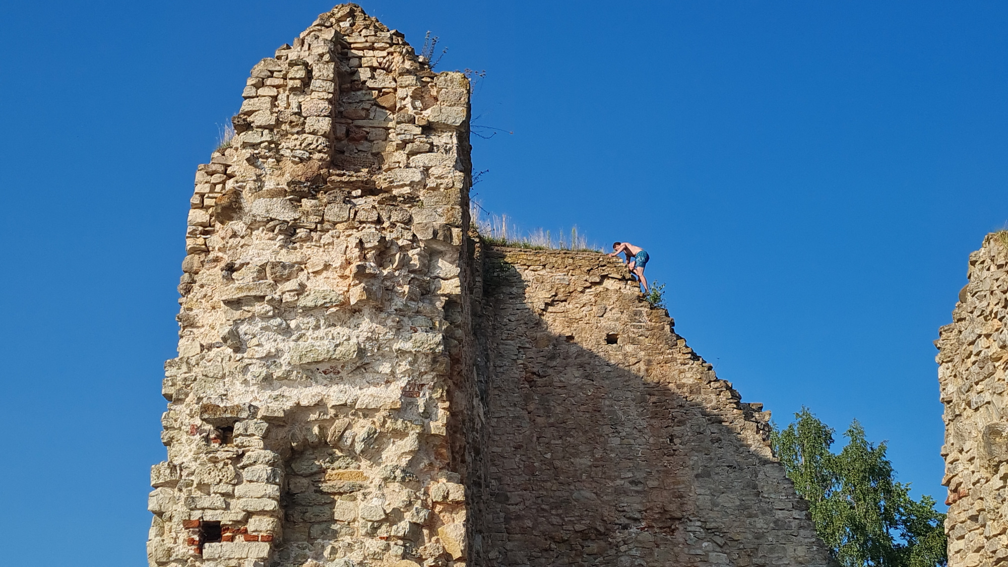 Divi Kokneses pilsdrupu apmeklētāji pārkāpuši drošības noteikumus un rāpušies augšā uz pilsdrupu mūra. Pārgalvīgo rīcību iemūžinājuši aculiecinieki. Pa mūra sienu vispirms kāpis viens cilvēks, pēc tam – otrs. Vēlāk abi no mūra ielēkuši Daugavā un peldējuši uz laivu, kur viņus gaidījuši draugi.