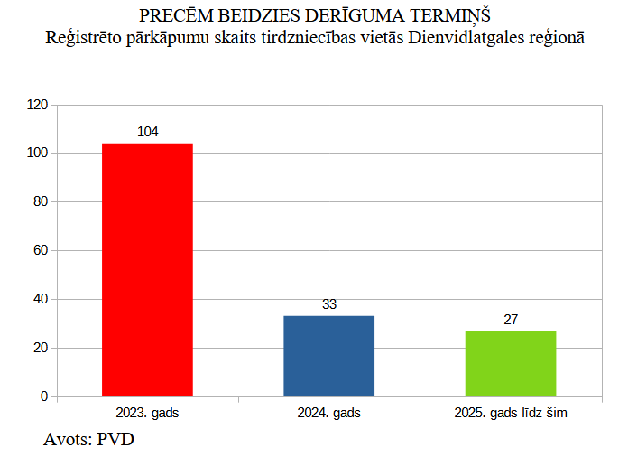 Aizpagājušajā gadā Dienvidlatgalē reģistrēti 104 gadījumi, kad tirdzniecības vietās konstatētas preces ar beigušos derīguma termiņu. Pērn tie bija 33 gadījumi, bet šogad līdz šim – 27 gadījumi.