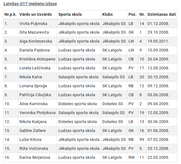 Latvijas U17 meiteņu handbola izlases sastāvā startam Eiropas čempionāta B divīzijā iekļautas piecas Jēkabpils Sporta skolas audzēknes – Vivita Puķinska, Gita Mazureviča, Aiga Koržeņevska, Luīze Kitova un Rūta Voičonoka. Komandu vada galvenā trenere Vita Brikmane, trenere Linda Bogdanova, kā arī fizioterapeite Madara Pilskalne.