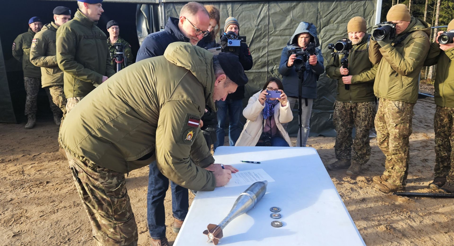 “Kapsulā tika ielikti saucamie koini, kas ir ļoti simboliski gan ministram, gan komandierim, gan apvienotajam štābam,” stāsta aizsardzības ministrs Andris Sprūds. “Vēstījums ir tāds, ka mūsu aizsardzībai ir jābūt jaudīgai, un tas arī bija ielikts tajā vēstījumā, kas tika pielikts klāt tiem koiniem. Šobrīd ir simboliska diena, simboliskā vietā ar vēstījumu par to, ka mēs uzsākam šo jaudīgo būvniecību un visi kopā sargājam Latviju.”