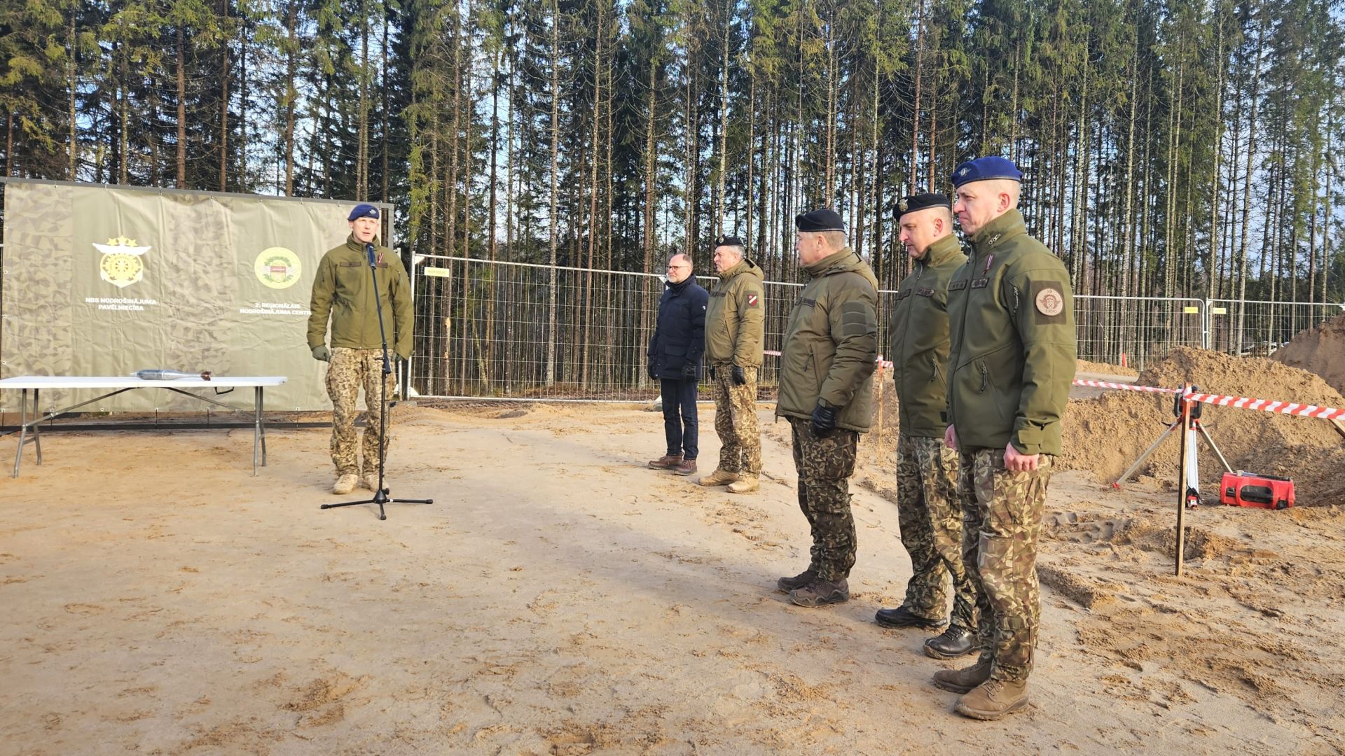 Militārajā poligonā “Sēlija” pulcējās aizsardzības ministrs Andris Sprūds, Nacionālo bruņoto spēku komandieris ģenerālleitnants Leonīds Kalniņš, kā arī Jēkabpils novada pašvaldības pārstāvji, lai svinīgā ceremonijā iemūrētu piemiņas kapsulu.