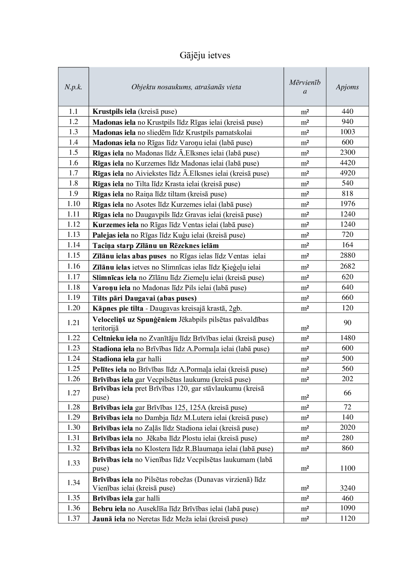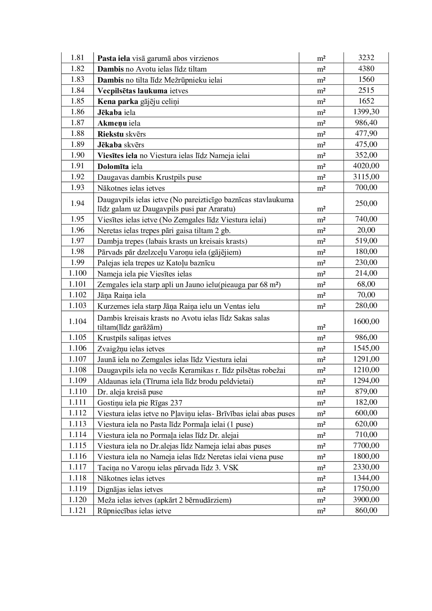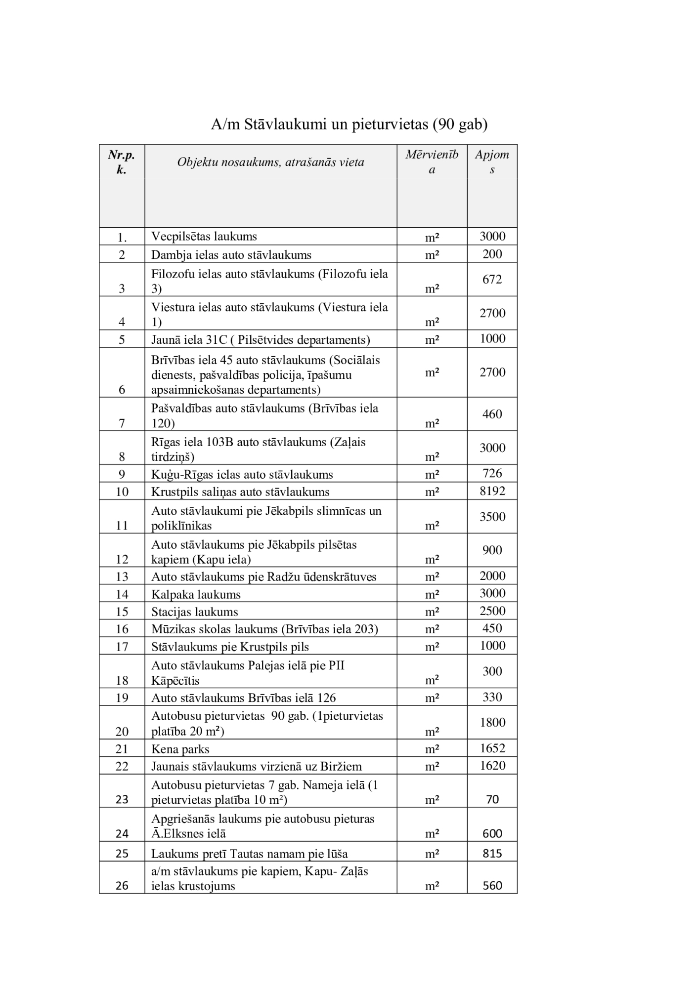 SIA “Jēkabpils pakalpojumi”, ikdienā veicot uzturēšanas darbus, ņem vērā pašvaldības iesniegtos sarakstus. Saraksts ar pašvaldības pārziņā esošajām ietvēm, laukumiem un pieturvietām, kas jātīra “Jēkabpils pakalpojumiem”, ir publicēts pielikumā.