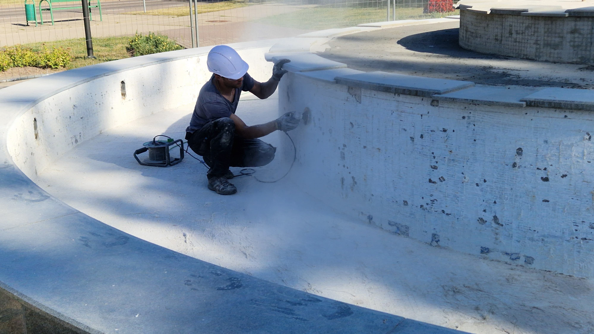 Vides objekta izskats gan nedaudz mainīsies, jo būs citādāka flīžu krāsa. Ja iepriekš tās bija baltas, tad jaunās spāņu mozaīkas flīzes būs zilā tonī. Šajās dienās darbi notiek agri no rītiem un vakaros, jo pa dienu ir pārāk liels karstums.