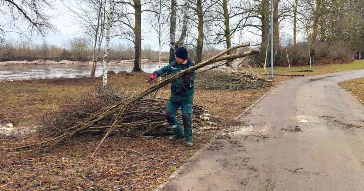 SIA “Jēkabpils pakalpojumi” uzsākuši sakopšanas darbus Krustpils saliņā. Janvāra plūdu laikā saliņas infrastruktūrai nodarīti lieli postījumi, tādēļ darba ir daudz. Jānozāģē aizlauztie koki, jāsavāc zari, krasti jāattīra no krūmiem, kas plūdu laikā tika noliekti. Tāpat jāiztīra ūdens sanestie gruži starp estrādes soliņiem, kā arī jāsavāc žoga atliekas, kuras pēc tam tiks nodotas restaurācijai.