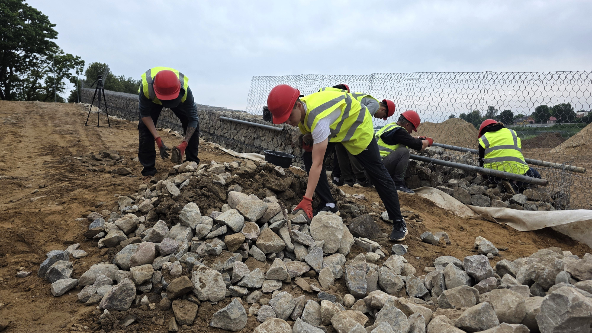 Jēkabpilī jau otro gadu norit būvdarbi uz Daugavas aizsargdambja. Ikdienā tajos iesaistīti teju 80 strādnieku, no kuriem aptuveni 20 nav pastāvīgie būvuzņēmuma darbinieki, bet pieaicināti uz vasaras sezonu.