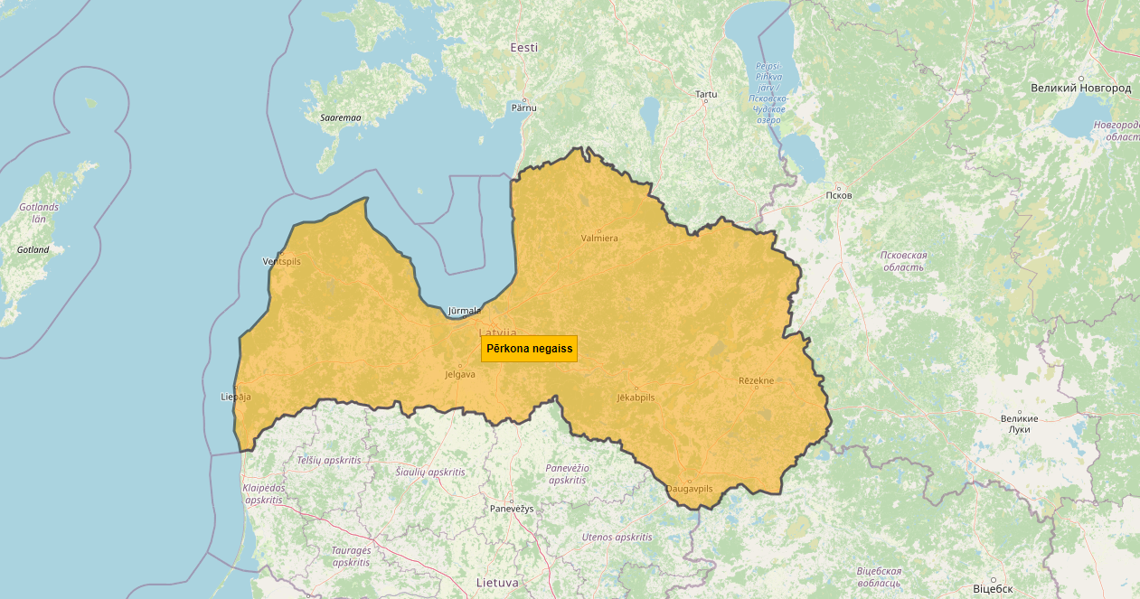 Savukārt Latvijas Vides, ģeoloģijas un meteoroloģijas centrs visā valsts teritorijā izsludinājis oranžā līmeņa brīdinājumu par stiprām lietusgāzēm un pērkona negaisu, lokāli iespējama krusa. Galvenokārt valsts austrumu daļā jāuzmanās no krasām vēja brāzmām.