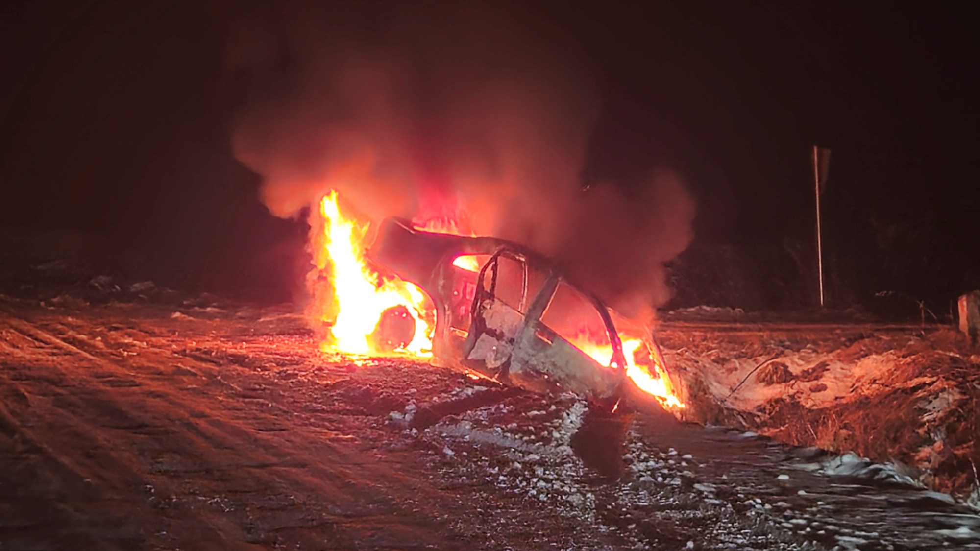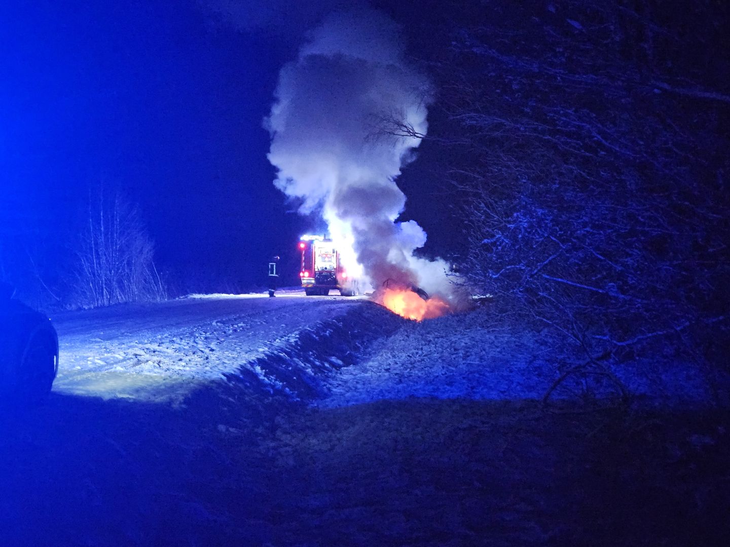 Aizkraukles novada Staburaga pagastā dega vieglā automašīna pilnā platībā. Darbs notikuma vietā ilga teju vienu stundu.