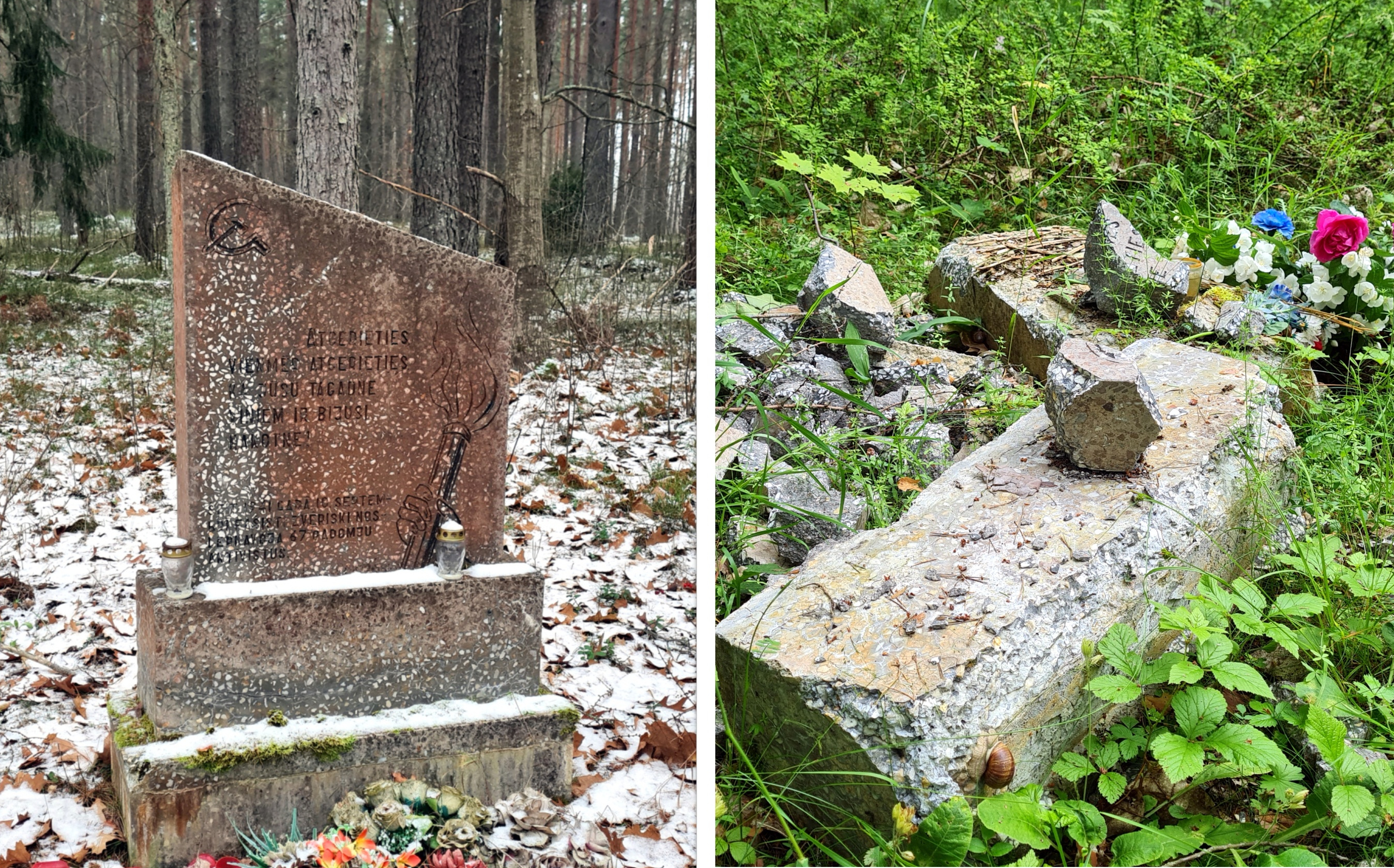 Foto: piemineklis 2024. gada decembrī un 2025. gada jūnijā