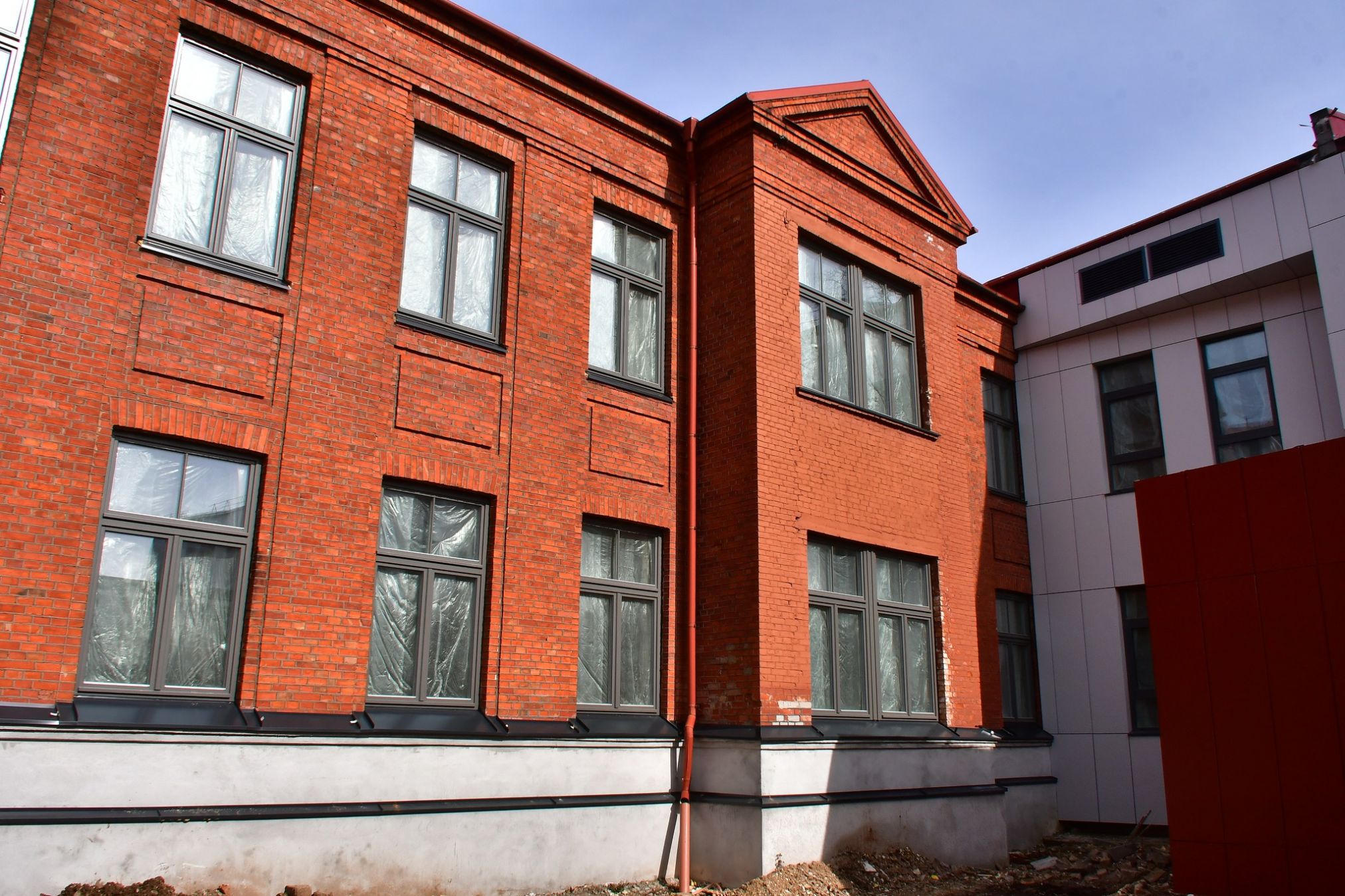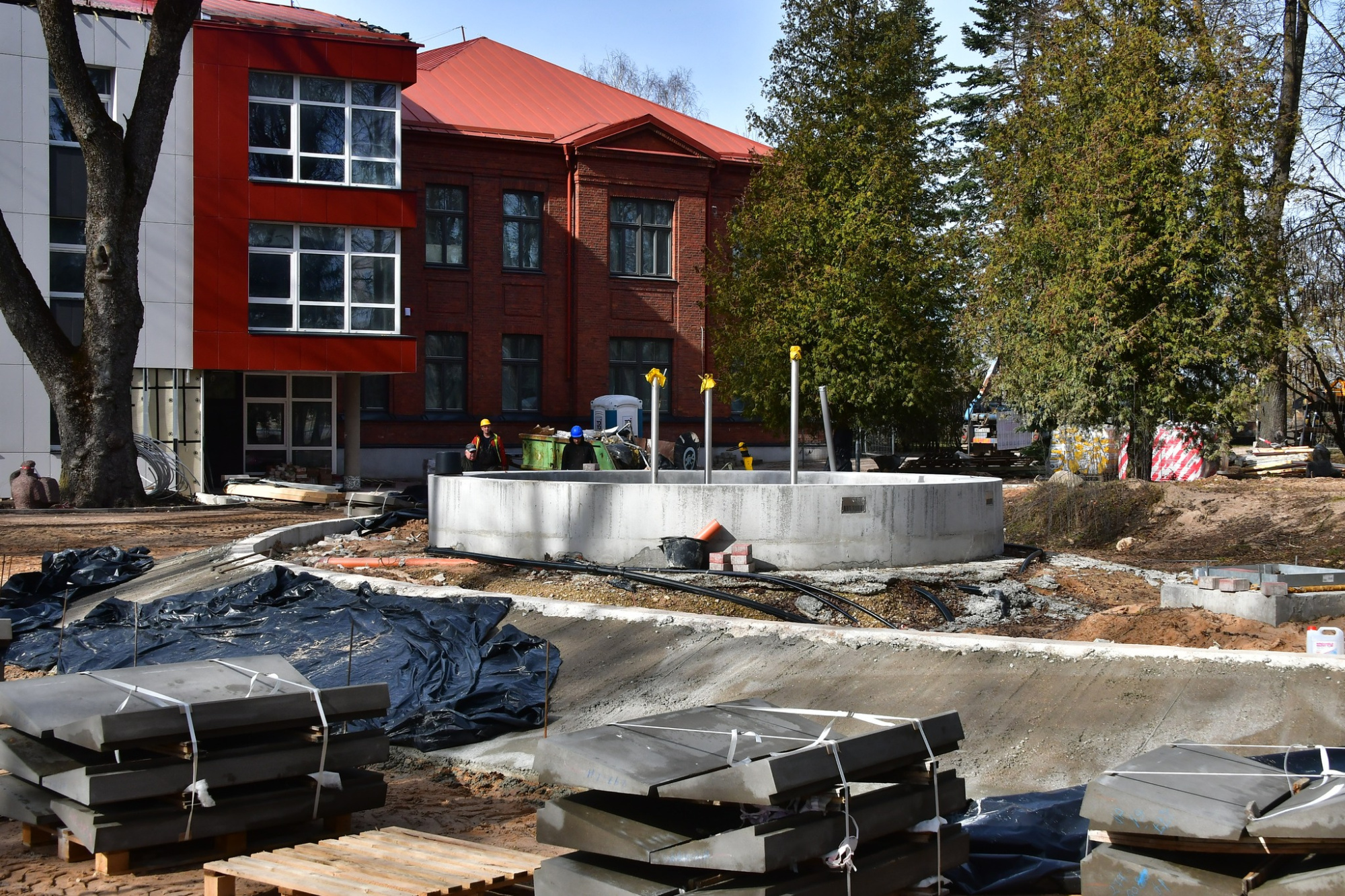 Jēkabpils Valsts ģimnāzijā turpinās būvdarbi, ko veic SIA “Jēkabpils PMK”. Šobrīd tiek veikti apdares darbi skolas mācību korpusos un sporta zālē. Vēsturiskajā skolas daļā tiek krāsotas sienas, flīzētas grīdas sanitārajos mezglos un ieklāts linolejs mācību telpās. Drīzumā reģionālajā metodiskajā centrā sāksies parketa seguma ieklāšana un akustisko griestu izbūve. Sporta zālē tiek izbūvētas inženierkomunikācijas. Vienlaikus tiek attīrīta fasāde un atjaunoti fasādes skārda elementi. Atsākti arī teritorijas labiekārtošanas darbi pie ģimnāzijas – tiek bruģēti laukumi, montēti betona pakāpieni pie strūklakas. Tuvākajās nedēļās plānots uzstādīt strūklakas dekoratīvos elementus.