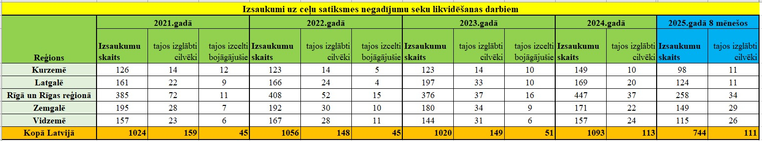 Izsaukumu skaits uz avārijām ir liels. Ik gadu Valsts ugunsdzēsības un glābšanas dienests saņem vairāk nekā tūkstoti izsaukumu uz ceļu satiksmes negadījumiem, bet šā gada pirmajos astoņos mēnešos glābēji veikuši darbu jau 744 gadījumos, no tiem 149 reģistrēti tieši Zemgales reģionā. Tas ir gandrīz tikpat liels izsaukumu skaits, kāds reģionā tika fiksēts visa pagājušā gada laikā, kad ugunsdzēsēji devās uz 171 avāriju.