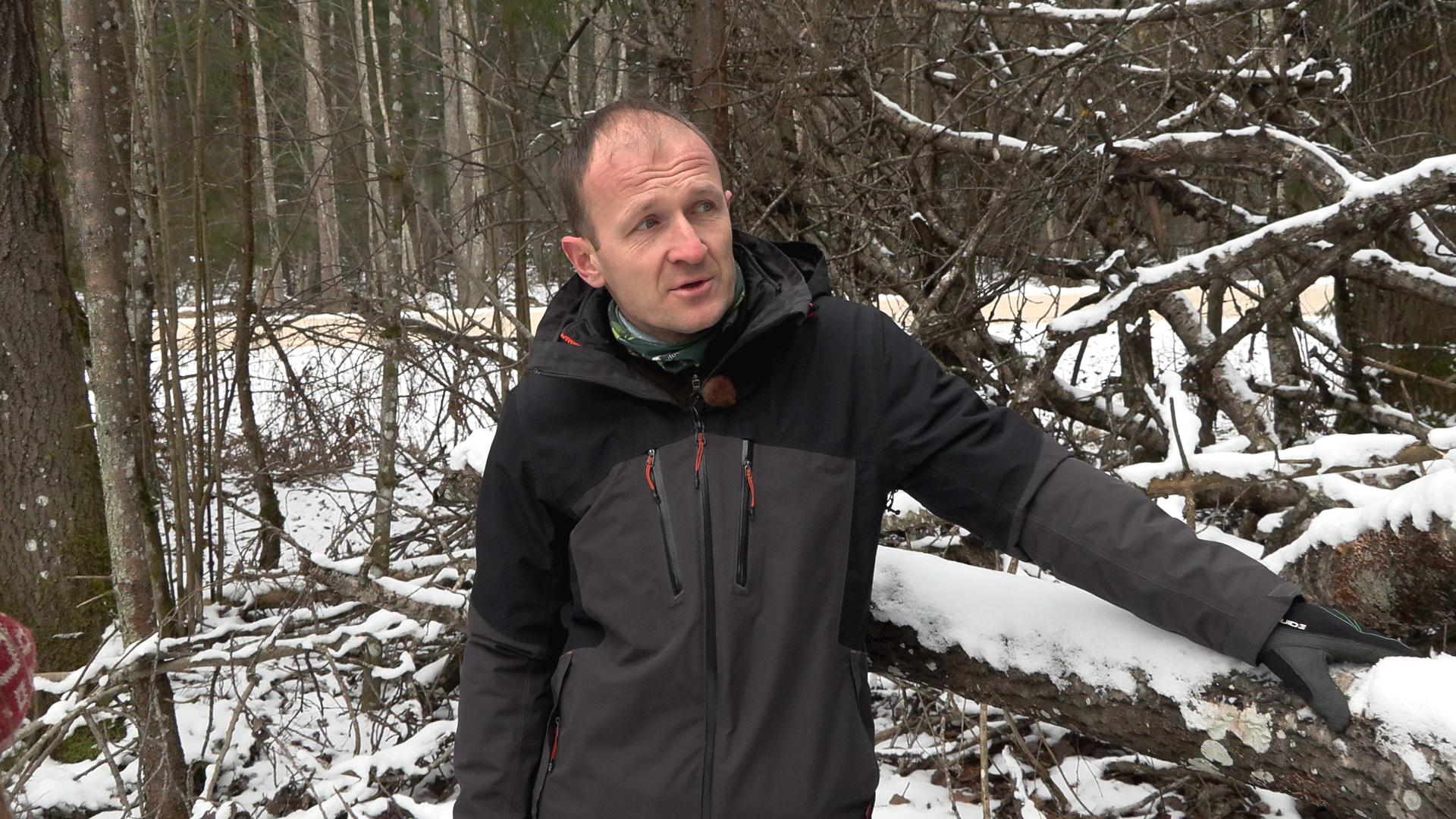 “Mēs esam pie vienas no apšu kritalām, ko mēdz apdzīvot sarkanais plakanis,” stāsta LVM vides plānošanas vadītājs Mārtiņš Kalniņš. “Šo sugu savā pētnieka karjerā esmu atradis tikai dažas reizes, un šis ir trešais gadījums, kad es atrodu pieaugušu vaboli, šajā gadījumā pat ne vienu, bet piecas vaboles vienkopus. Šodien miza ir diezgan piesalusi, tādēļ mums šodien neizdosies atrast vaboli, bet tas, ko mēs varam redzēt, ka te jau ir dažādas kukaiņu ejas un ir kalis dzenis. Tas nozīmē, ka dzenis ir dzirdējis, ka tur iekšā kāds dzīvo.”