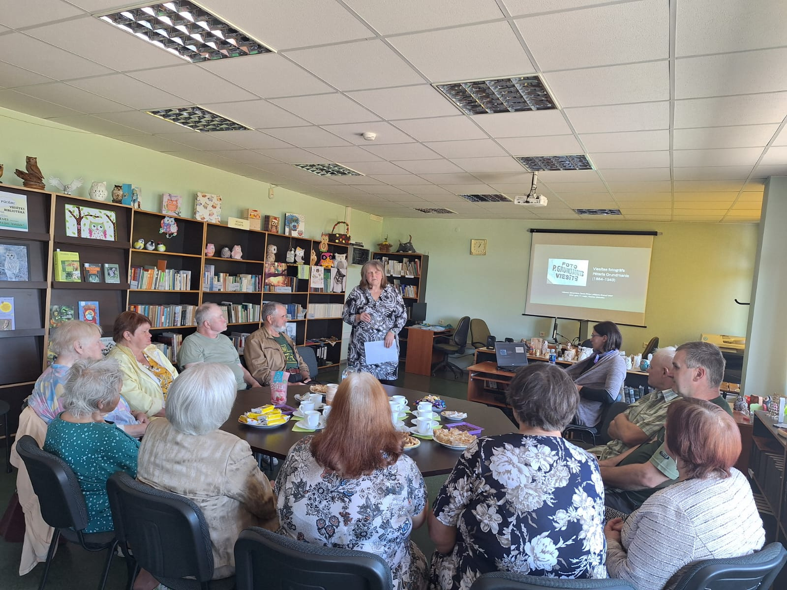 Uz tikšanos bija ieradusies arī mākslas vēsturniece Zanda Zībiņa, kura Viesīti dēvē par savu dzimto pusi. Viņa klātesošajiem varēja pastāstīt par fotogrāfu, jo ir veikusi Valsts kultūrkapitāla fonda atbalstītu pētījumu “Viesītes fotogrāfs Pēteris Grundmanis (1884 – 1949)”.