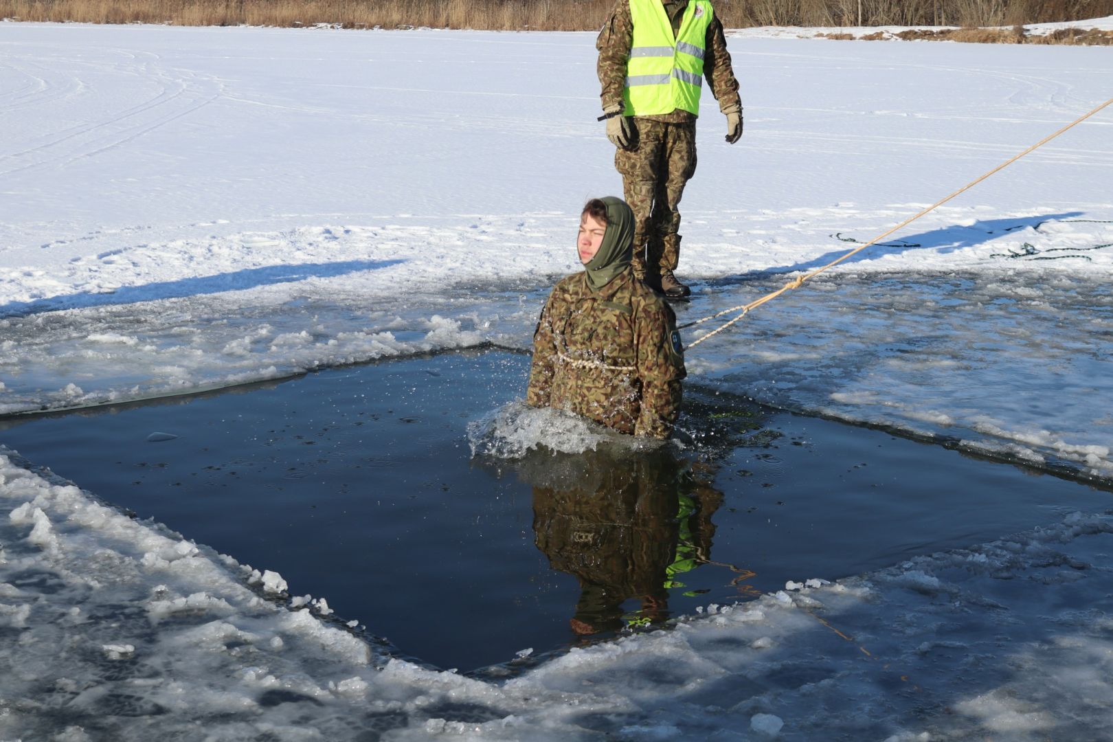 Zemessargi veica ieroču piešaudi, kas ir būtiska precīzai šaušanai. Plecu pie pleca veidoja grupas patvērumu ziemas apstākļiem, lai varētu uzkrāt spēkus atpūtas brīžos, un pārbaudīja sava ķermeņa reakciju, spēju to kontrolēt nodarbībā – rīcībā ielūstot ledū.